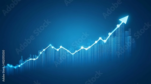 Upward Trend Line Graph with Cityscape Background