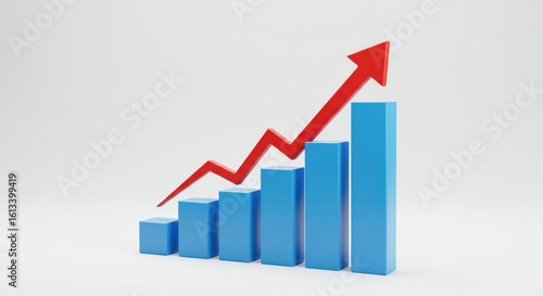 Upward trending bar chart with red arrow symbolizing growth and success