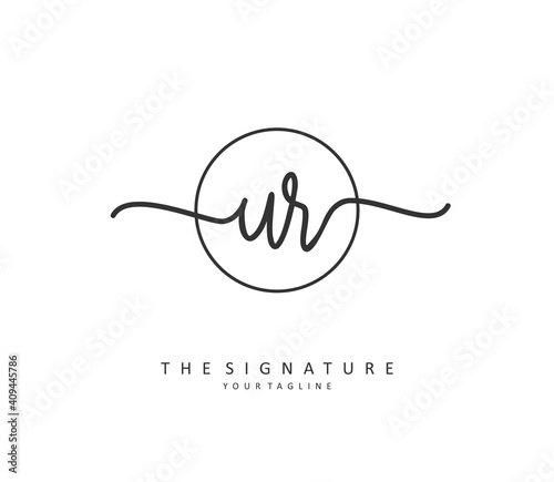 UR Initial letter handwriting and signature logo. A concept handwriting initial logo with template element.