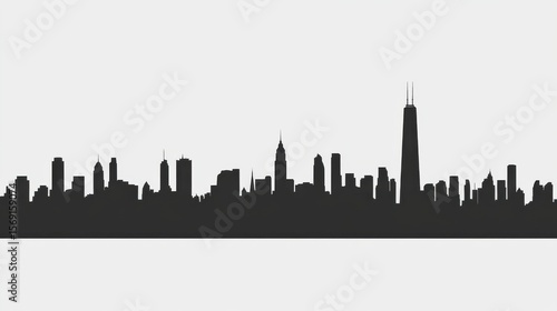 Urban City Skyline Silhouette Against White Background