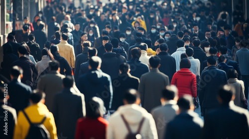 Urban Crowd on a Busy City Street