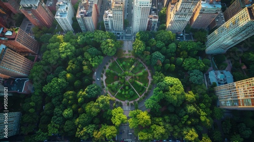 Urban Green Spaces: Images of parks, gardens, and green rooftops in urban settings, illustrating the integration of nature into cityscapess