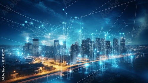 Urban high power poles connected to smart grid, energy supply, power distribution, power transmission, power transmission, high voltage supply, technology, community, city