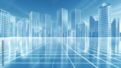 Urban master plan blueprint featuring multiple high-rise towers, city grid design, futuristic metropolis development
