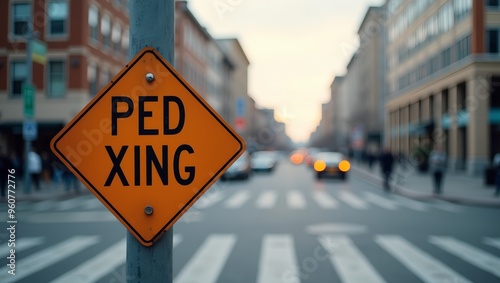 Urban Safety Pedestrian Crosswalk Sign in City Environment
