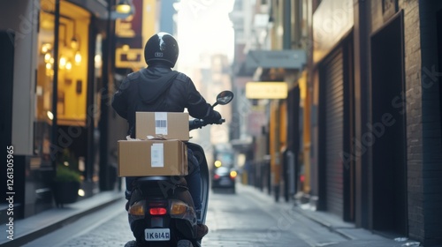 Urban Scooter Delivery: Courier Using Scooter to Deliver Packages in Dense Urban Area, Emphasizing Quick and Efficient Delivery Methods and Agility in Crowded Environments