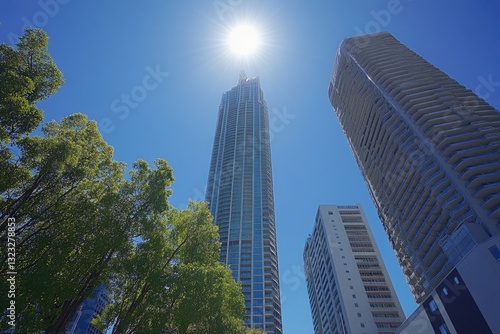 Urban Skyline, Sunny Day, City Trees, Architecture