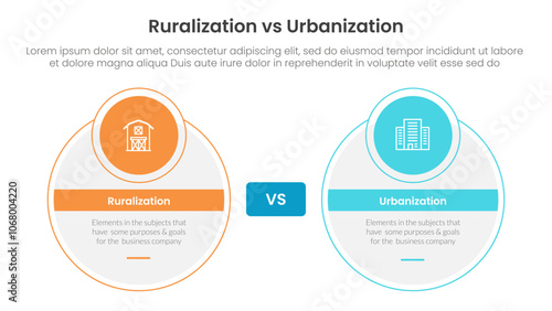urbanization vs ruralization comparison concept for infographic template banner with big circle and small circle badge with two point list information
