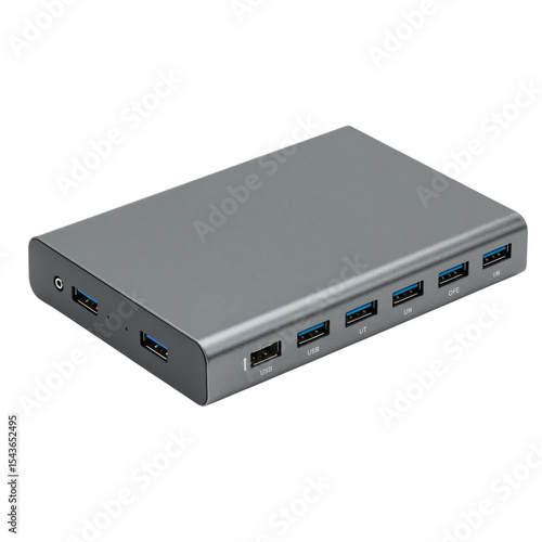 USB dock device with multiple ports in sleek gray design