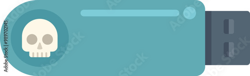 Usb flash drive infected with a virus, showing a skull icon, representing the potential dangers of malware