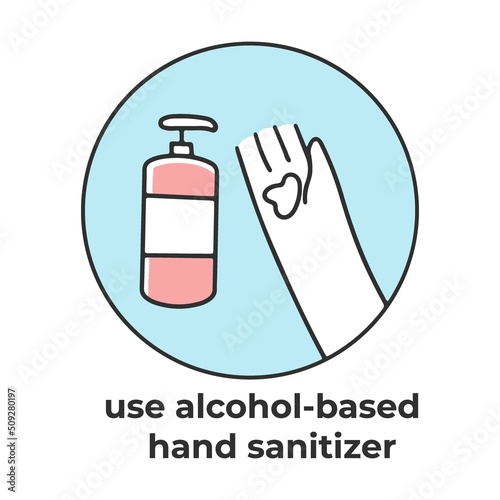 Use an alcohol sanitizer. Coronavirus prevention tip. Doctor presenting list of measures to stop corona virus spreading. Vector illustration for ncov-2019 protection