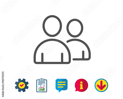 User line icon. Couple or Group sign. Person silhouette symbol. Report, Service and Information line signs. Download, Speech bubble icons. Editable stroke. Vector