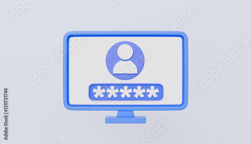 User login from desktop with password security, login user interface concept 3d illustration