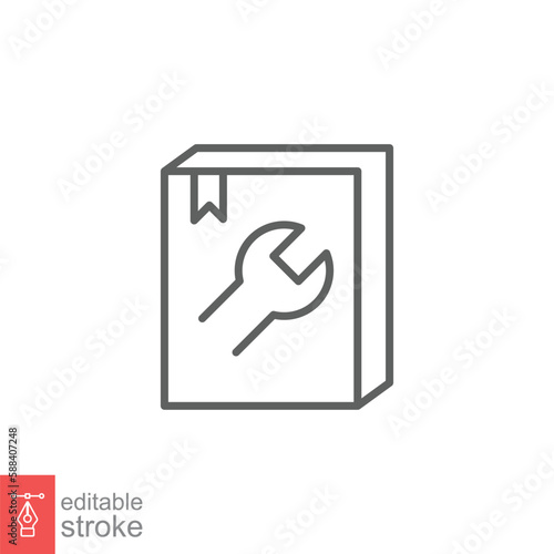 User manual book icon. Instruction, guide book, project technical document concept. Simple outline style. Thin line symbol. Vector illustration isolated on white background. Editable stroke EPS 10.