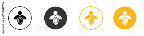 User protection shield icon black and white vector outline sign