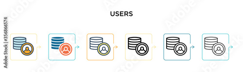 Users vector icon in 6 different modern styles. Black, two colored users icons designed in filled, outline, line and stroke style. Vector illustration can be used for web, mobile, ui