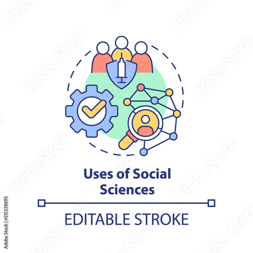 Uses of social sciences concept icon. Prevention measures. Pandemic preparedness abstract idea thin line illustration. Isolated outline drawing. Editable stroke. Arial, Myriad Pro-Bold fonts used