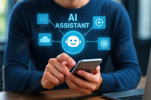 Using AI Assistant on Mobile Device with Artificial Intelligence Concept and Digital Technology