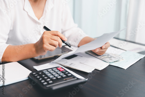 Using calculating machine, household carefully manages each bill and expense to plan financial budget, ensuring timely payment, consistent saving, smart investment for secure home finance strategy.