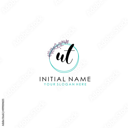 UT Initial letter handwriting and signature logo. Beauty vector initial logo .Fashion boutique floral and botanical