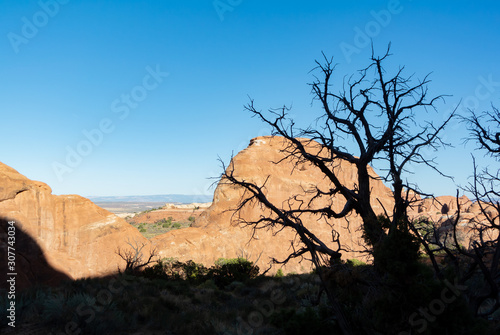 Utah/ united states of America, USA-October 8th 2019: Silhouette of dead tree in arches national park