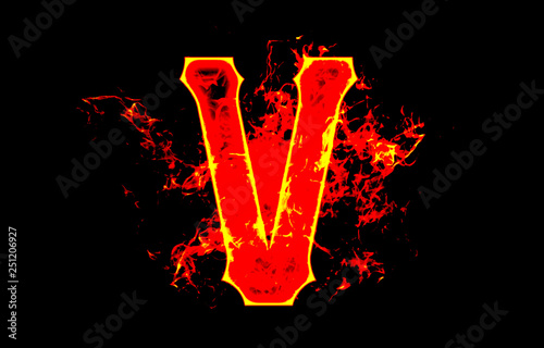 v alphabet letter logo fire flames design with a grunge or grungy texture