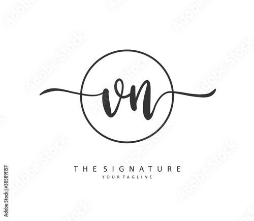V N VN Initial letter handwriting and signature logo. A concept handwriting initial logo with template element.