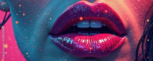 V vector illustration of stylized lips with geometric patterns and halftone effects, floral patterns, halftone, vector art