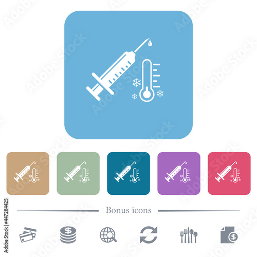 Vaccine storage temperature frosty flat icons on color rounded square backgrounds