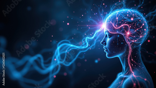 Vagus Nerve Stimulation with human head superimposed over a starry nebula background.