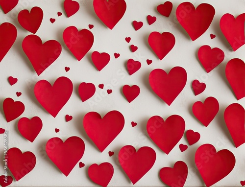 valentine hearts background. red paper heart shape, valentines concept, flat lay with shadow