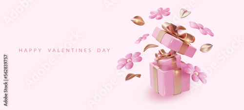 Valentine's day design template about 14 February. Realistic rose flower and boxes. Romantic background
