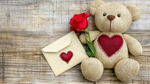 Valentine's day gift ideas home teddy bear and rose cozy atmosphere close-up love and affection