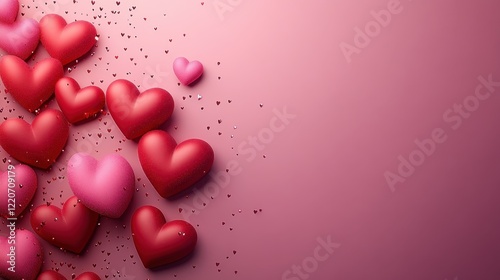 Valentine's day hearts background with pink and red heart shapes and copy space for design