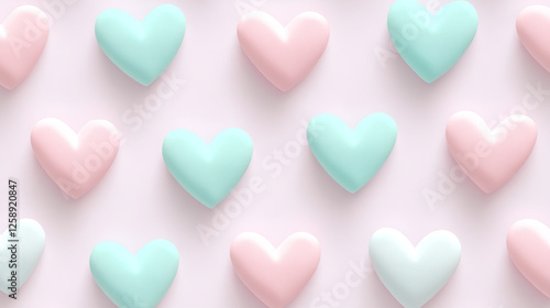 Valentines day light pink and mint green hearts in simple grid pattern background.