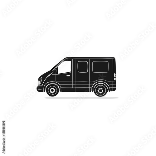 Van Illustration Vehicle Silhouette Symbol Icon Simple Black and White Side View Graphic