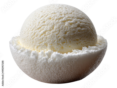 Vanilla Dream: A smooth and creamy scoop of vanilla ice cream, with its classic flavor, is presented on a white surface, inviting pure dessert indulgence.