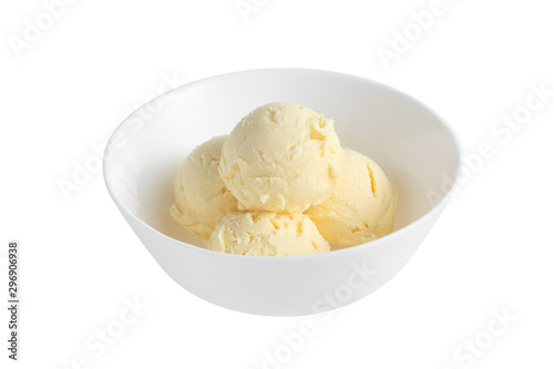 vanilla ice cream in ceramic cup isolated on white background
