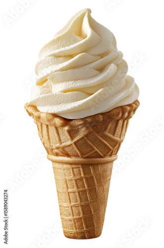 Vanilla Soft Serve Ice Cream Cone on a Transparent Background for Easy Integration