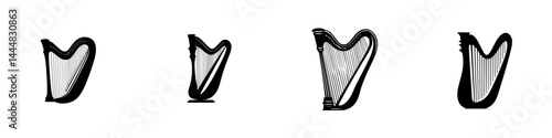 Variety of harp silhouettes showcasing different designs in a simple, clean style for graphic design purposes