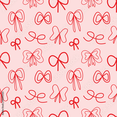 Various abstract bow or ribbon hand drawn with line seamless pattern background for wrapping and wallpaper