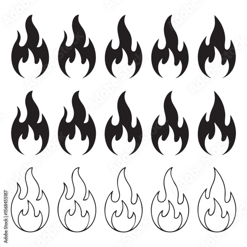 Various fire icons are isolated on white background