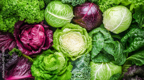 Various fresh salad greens background. Crispness and freshness of vegetable perfect for use in health and nutrition-related designs.