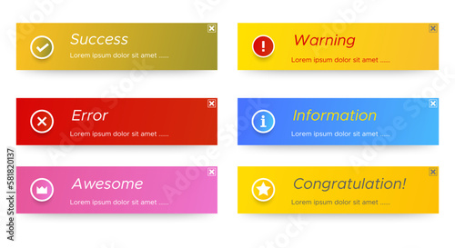Various notification window templates. The layout of the smartphone warning or message interface. Windows of websites and applications. Vector illustration