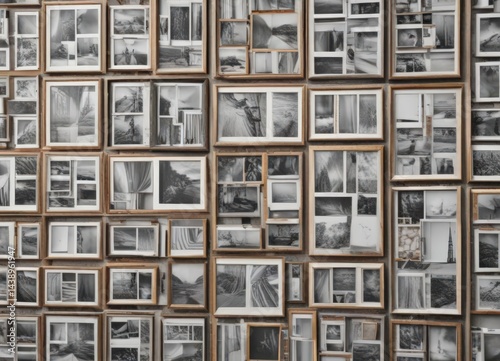 Various sized photo frames grid; collage effect mockup, template, design element