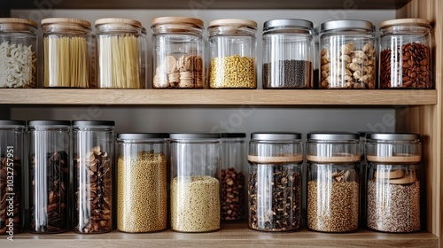 various storage containers neatly arranged in a pantry, symbolizing organization and efficiency in home management
