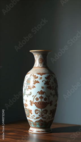 vase sitting on top of a wooden table