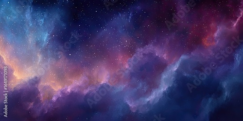 Vast cosmic nebula with swirling clouds of vibrant color and scattered stars