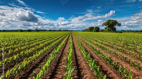 Vast Green Cornfield Under a Sunny Sky
