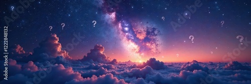 Vast sky, numerous question marks forming a celestial panorama, fantasy, idea
